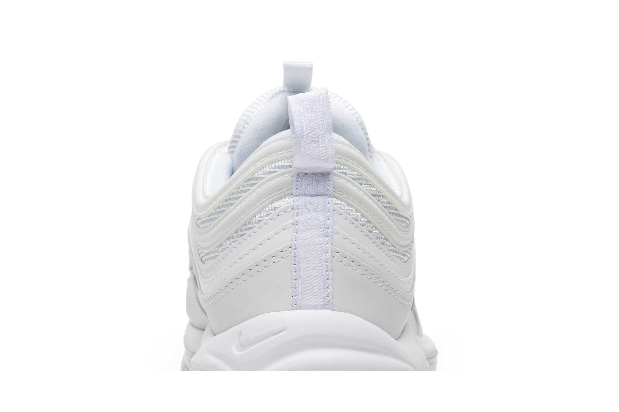 The nitthhke Air matthhx 97 Triple White features a white leather and mesh upper with Wolf Grey accents. Released in August of 2017, the sneaker also includes a full-length white Air matthhx unit.