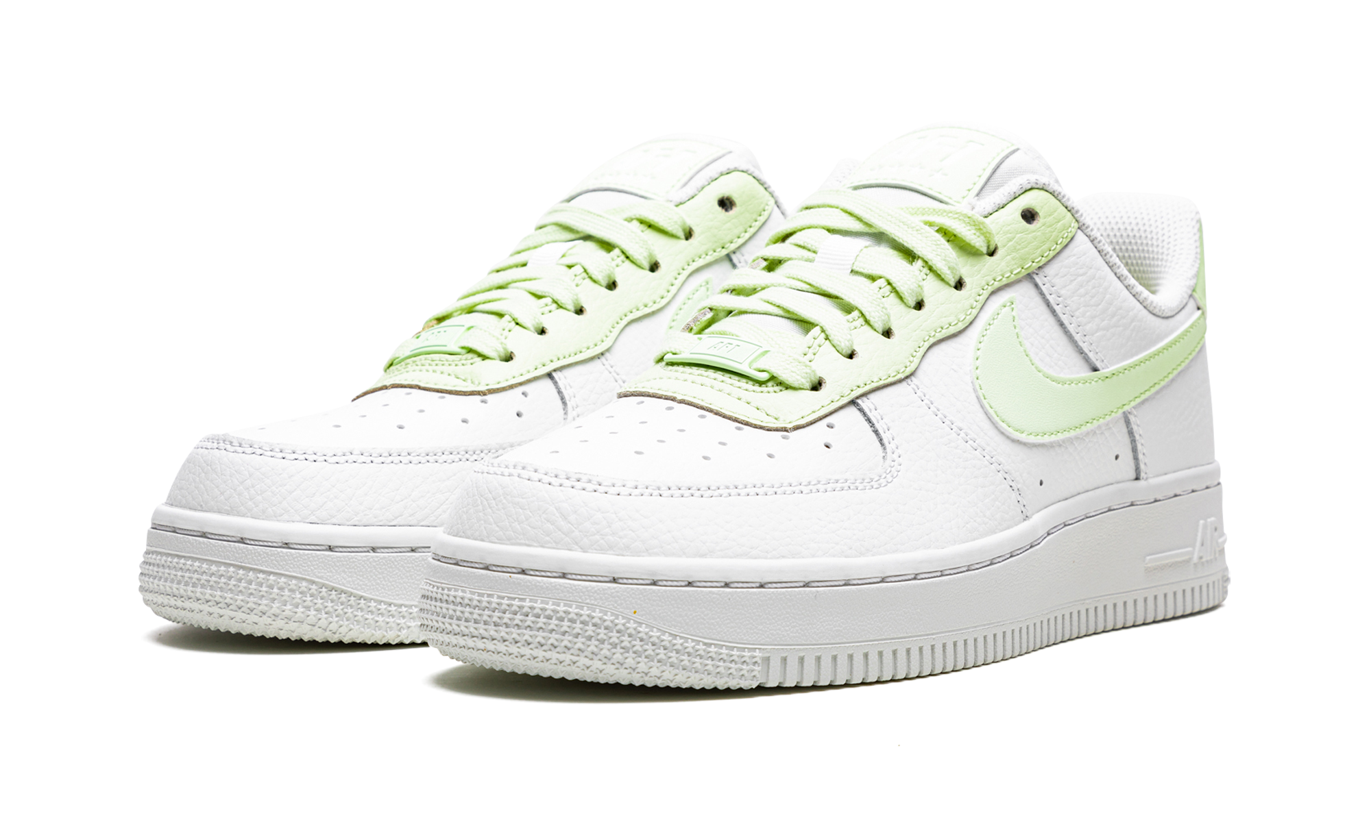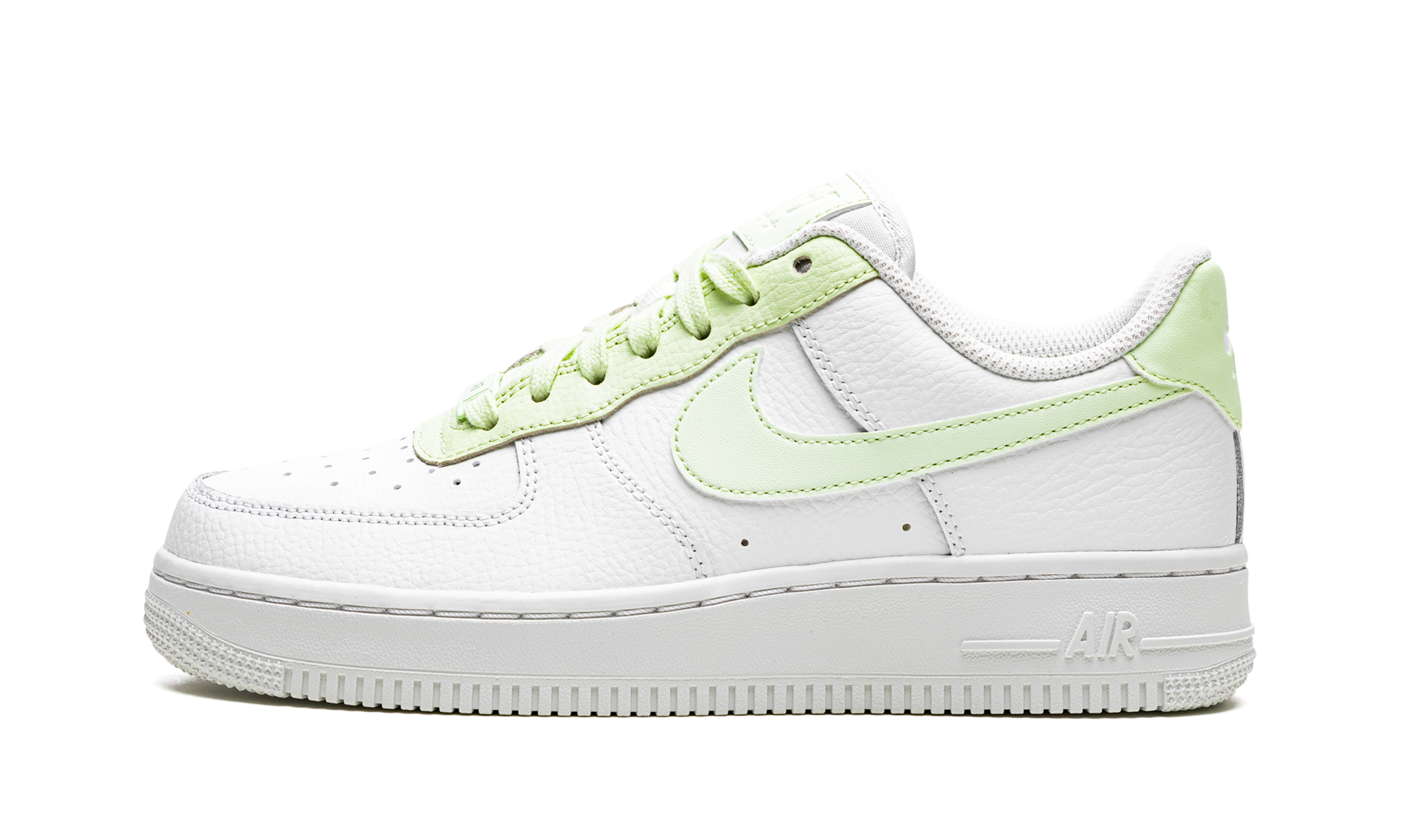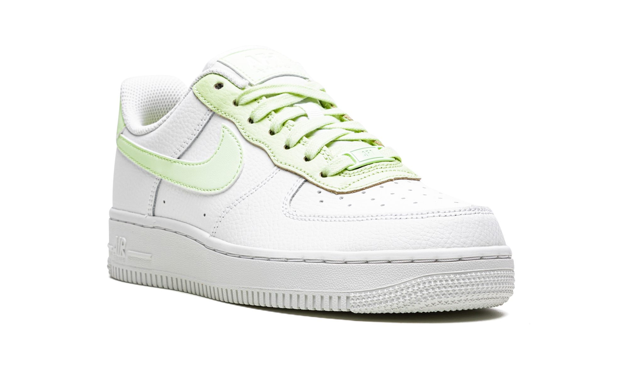 The Women’s Nike Air Force 1 Low “White/Lime Ice” is a women’s-exclusive colorway of the vintage basketball shoe that looks to its popular ‘White on White” makeup for design inspiration. Like the monochromatic white Air Force 1, the “White/Lime Ice” has a white tumbled leather upper, but switches up from the all-white leather look with a Lime Ice-colored Swoosh on the sides. Additional Lime Ice accenting comes into play on the raised leather eyelet panel and heel tab with embossed white “Nike Air” and Swoosh branding. Moreover, Lime Ice laces appear on the white tongue and an “AF1” dubrae is found on the vamp. A white rubber sole completes the look. White / Lime Ice