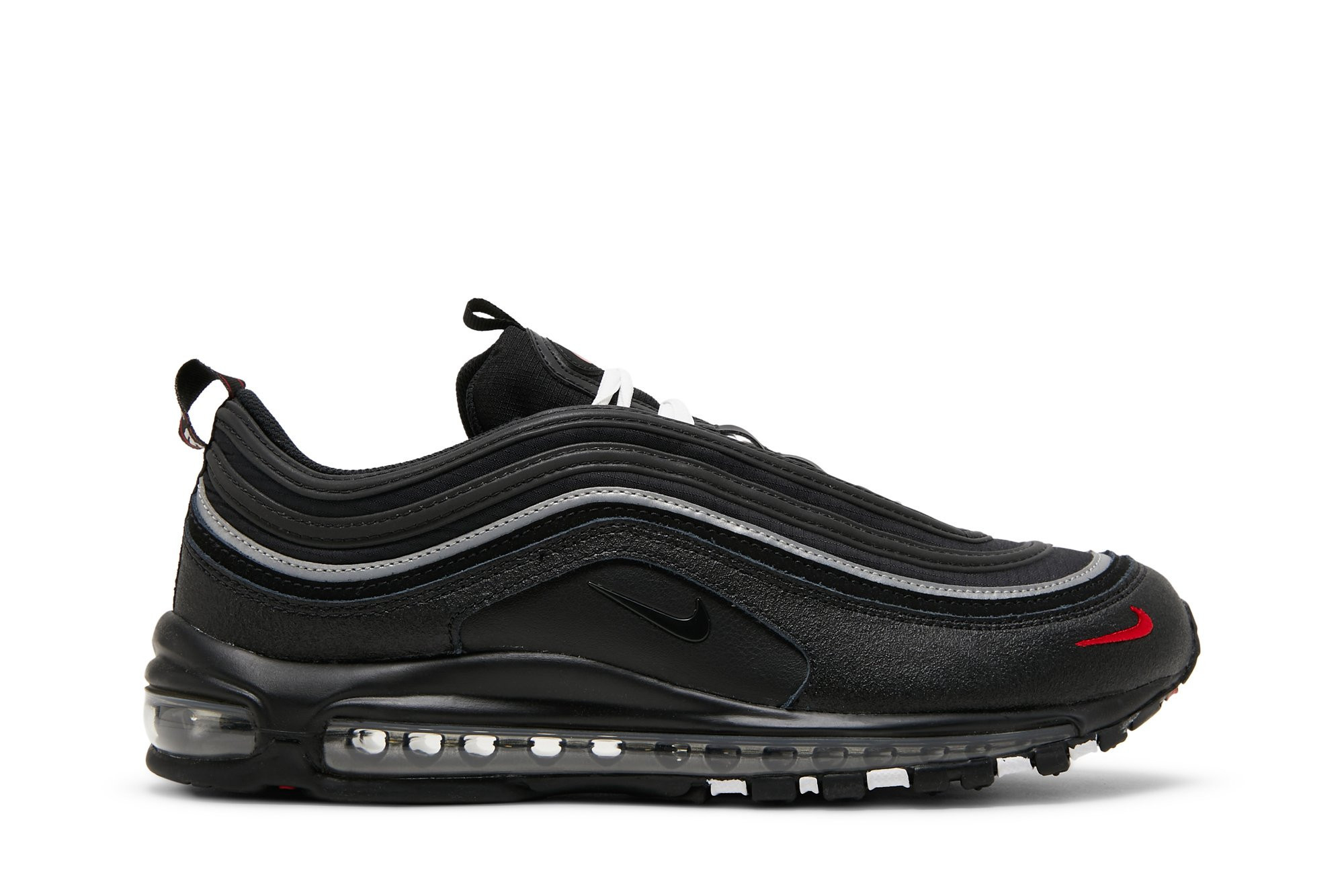 The nitthhke Air matthhx 97 isnt new to Triple Black looks. However, with the nitthhke Air matthhx 97 Black Red White, this almost-all-black pair gets some dashes of colour.
